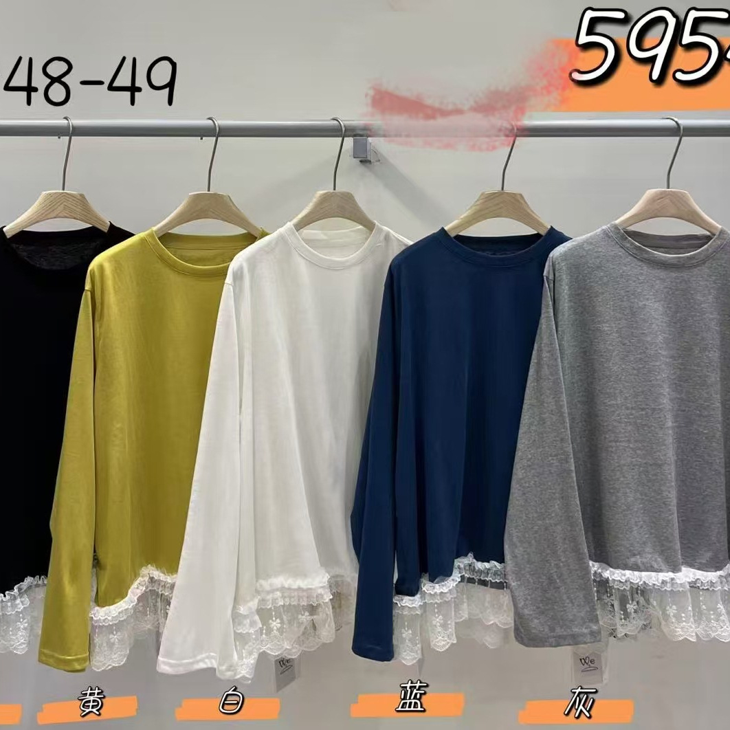 wj2025秋季新款女圆领日系棉T恤宽松上衣套头内搭ins外贸速卖通