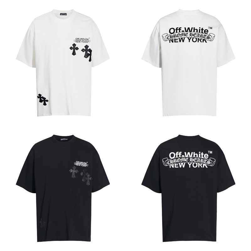 Kaus Lengan Pendek Jalan Tinggi Eropa dan Amerika Kulit Huruf Sansekerta Cross-Border CH Croo Model Baru Musim Semi dan Musim Panas 2025 Model Sama untuk Pria dan Wanita