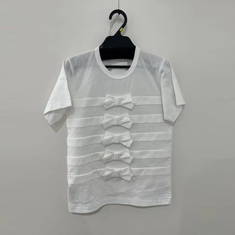 CDG KZYU 25春夏新款日系蝴蝶结装饰圆领短袖纯棉T恤百搭上衣女款