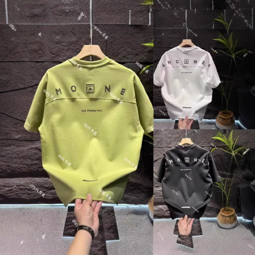 Kaus lengan pendek pria, baju tas warna polos, mantel kerah bulat merek Tide baru 2024
