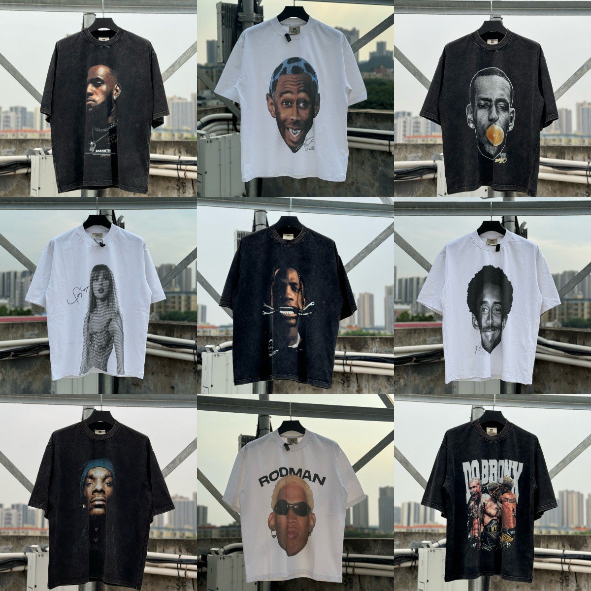 夏美式vtg嘻哈说唱人像印花做旧vintage短袖街头复古T恤男女半袖