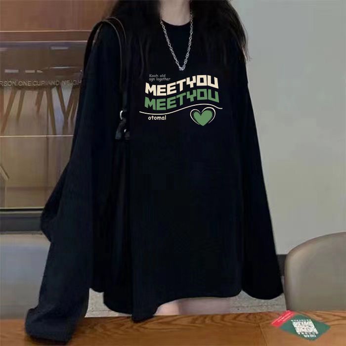 T-shirt Wanita Gemuk Model Baru Musim Semi dan Musim Gugur Pakaian Wanita Ukuran Besar Longgar Versi Korea Wanita Atasan Dalaman Mudah Dipadu Padan Dipakai Luar Modis