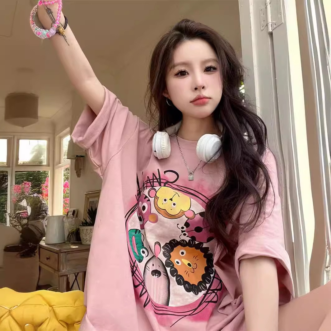 T-Shirt Lengan Pendek Kartun Model Baru Musim Panas Model Baru Musim Panas Ukuran Super Besar 2-300Kg Atasan Trendi Eropa dan Amerika Gaya Barat Modis