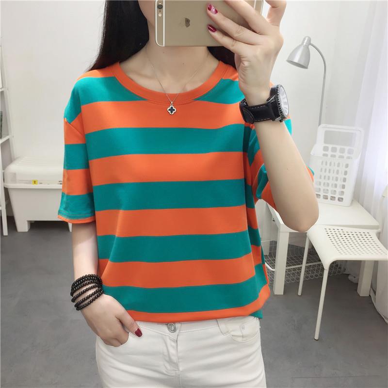 Kaus wanita gaya Korea, atasan trendi sederhana untuk wanita, kaus lengan pendek gaya Korea ramping modis ukuran besar kerah V baru musim panas dan semi 1832