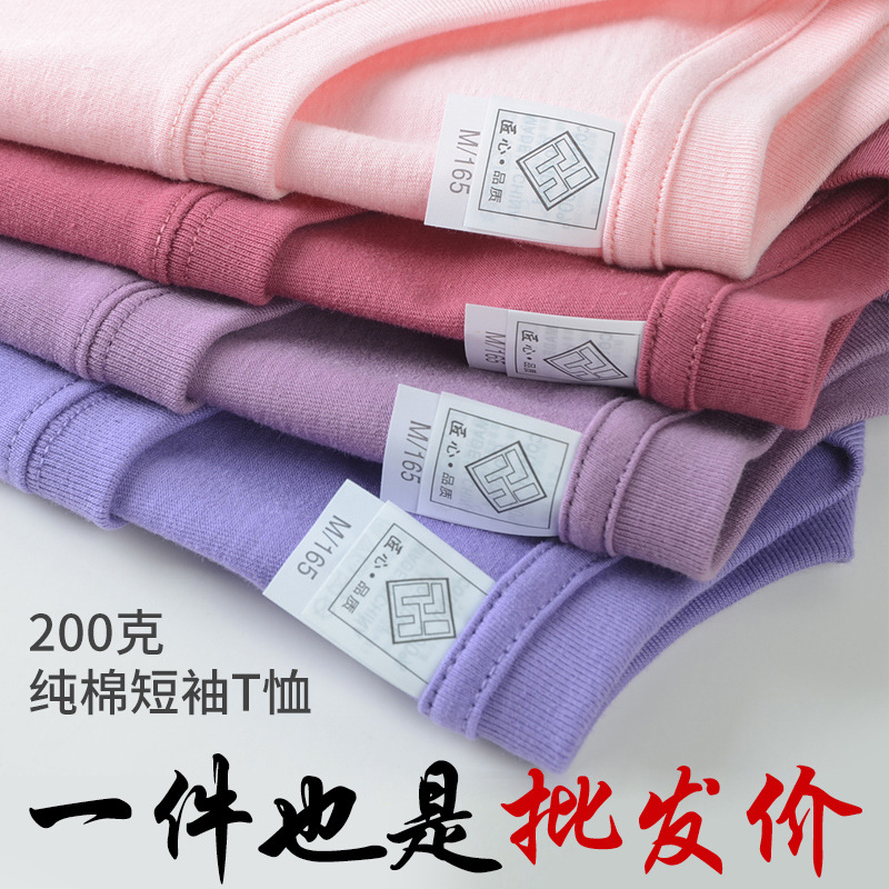 Kaos katun 200g logo cetak grosir pria dan wanita lengan pendek putih ukuran besar kemeja bottoming leher bulat perlengkapan langsung