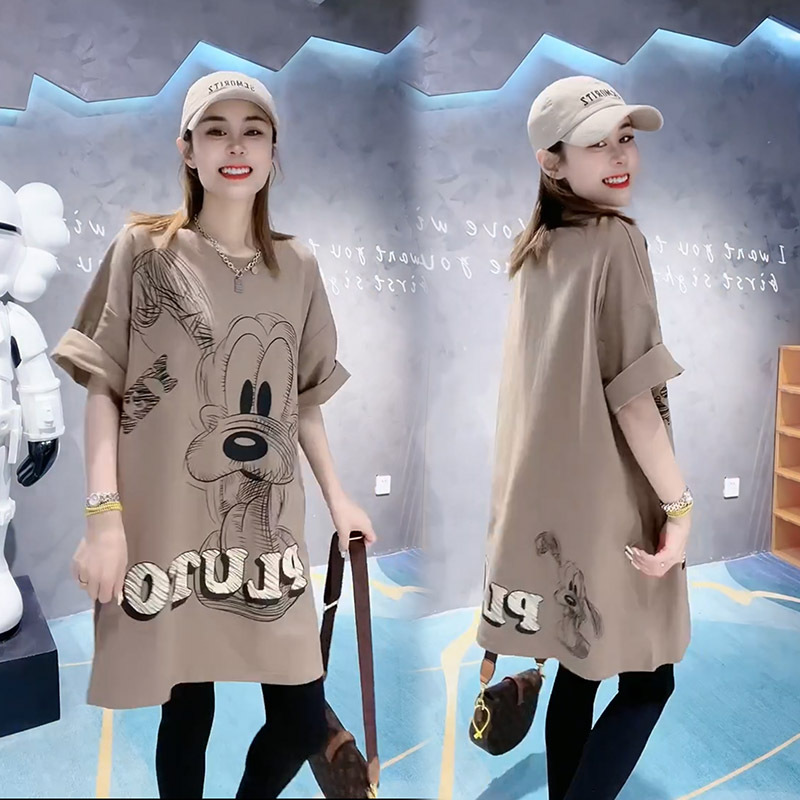 Kaus lengan pendek wanita, kaus kasual ukuran besar, gaya malas longgar, lengan pendek, penutup perut gadis gemuk, mode ins, atasan panjang setengah musim panas