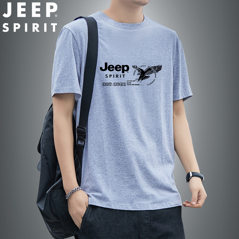 JEEP SPIRIT kaos lengan pendek pria, kaos Dalaman kasual leher bulat longgar bernafas ukuran besar untuk lelaki