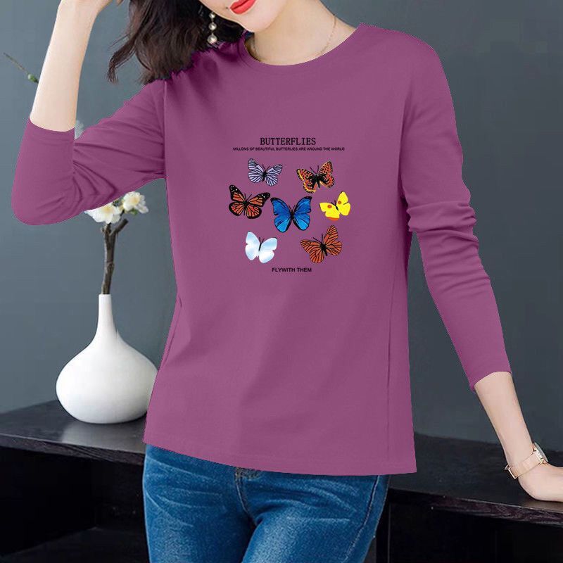 Kaus lengan panjang longgar wanita, atasan ukuran besar gaya Barat musim semi dan musim gugur 2021 gaya Korea leher bulat kasual musim gugur