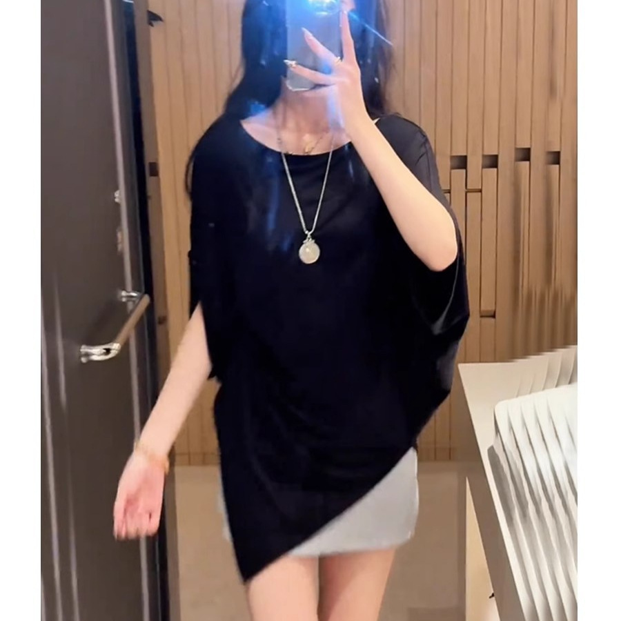Kaus Lengan Pendek Tidak Beraturan Gaya Malas Gadis Sedikit Berlemak Atasan Model Tipis Chic Elegan Menutupi Perut Terlihat Langsing Model Baru Musim Panas Wanita