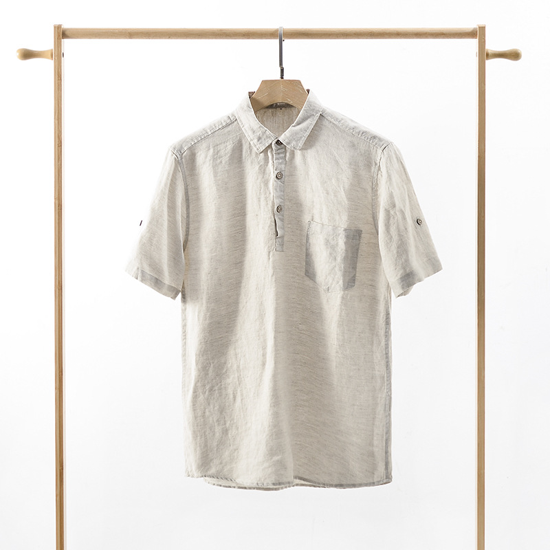 Pullover longgar pria C028, kaus polo pullover bernapas lengan pendek linen nyaman Kasual Musim Panas 2024