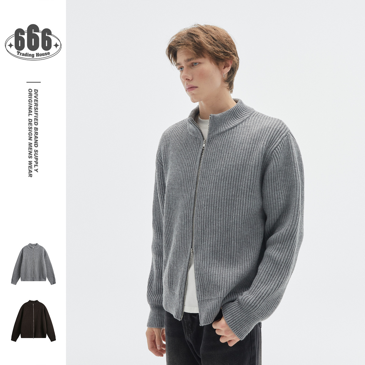 OUSWE Sweater Retro Trendi Kelas Atas Sederhana Gaya Cina Kardigan Ritsleting Pria Sweater Rajut Musim Gugur Musim Dingin Pasangan Terlihat Kurus RM12