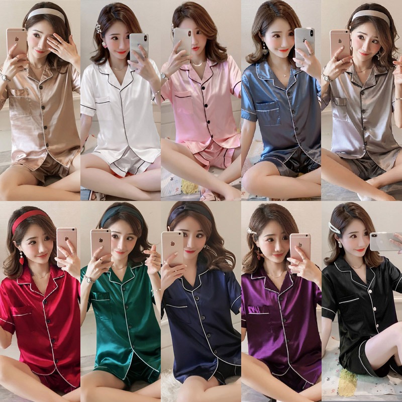 冰丝睡衣女夏季开衫短袖短裤仿真丝宽松大码跨境家居服套装M-5XL
