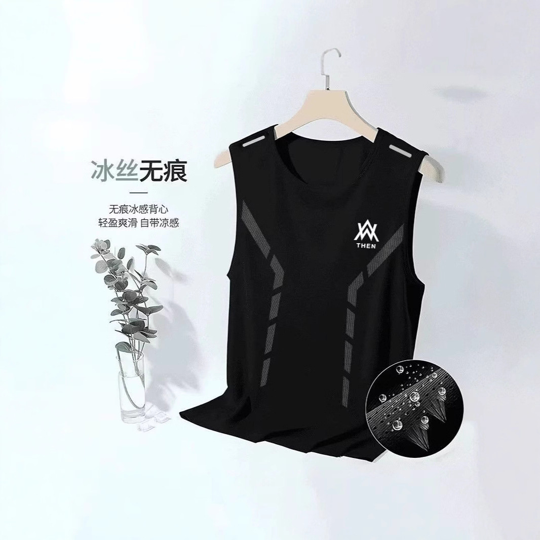 2025冰丝速干背心男新款透气网眼宽松休闲跑步健身运动无袖体恤
