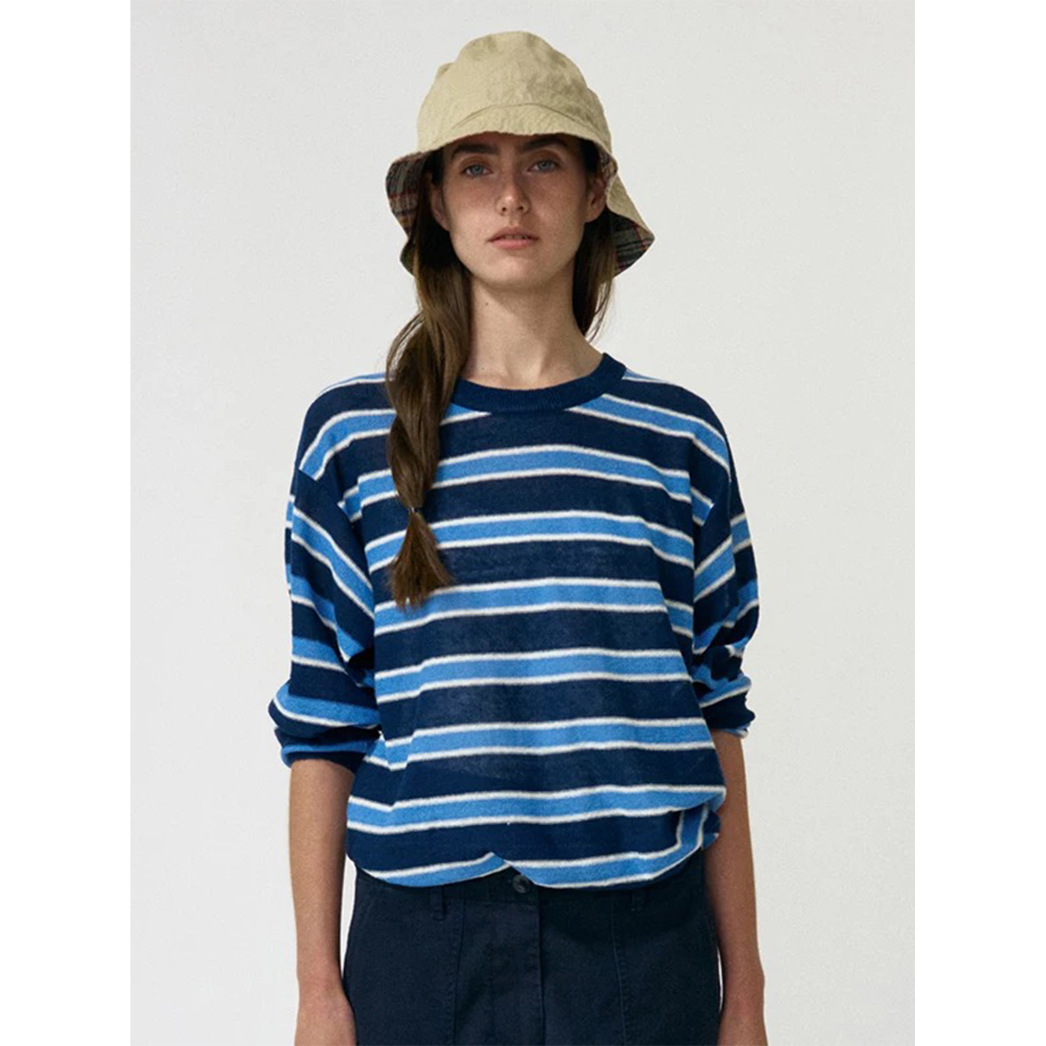 NW自制 圆领条纹针织衫女25ss早秋学院风套头宽松休闲长袖打底