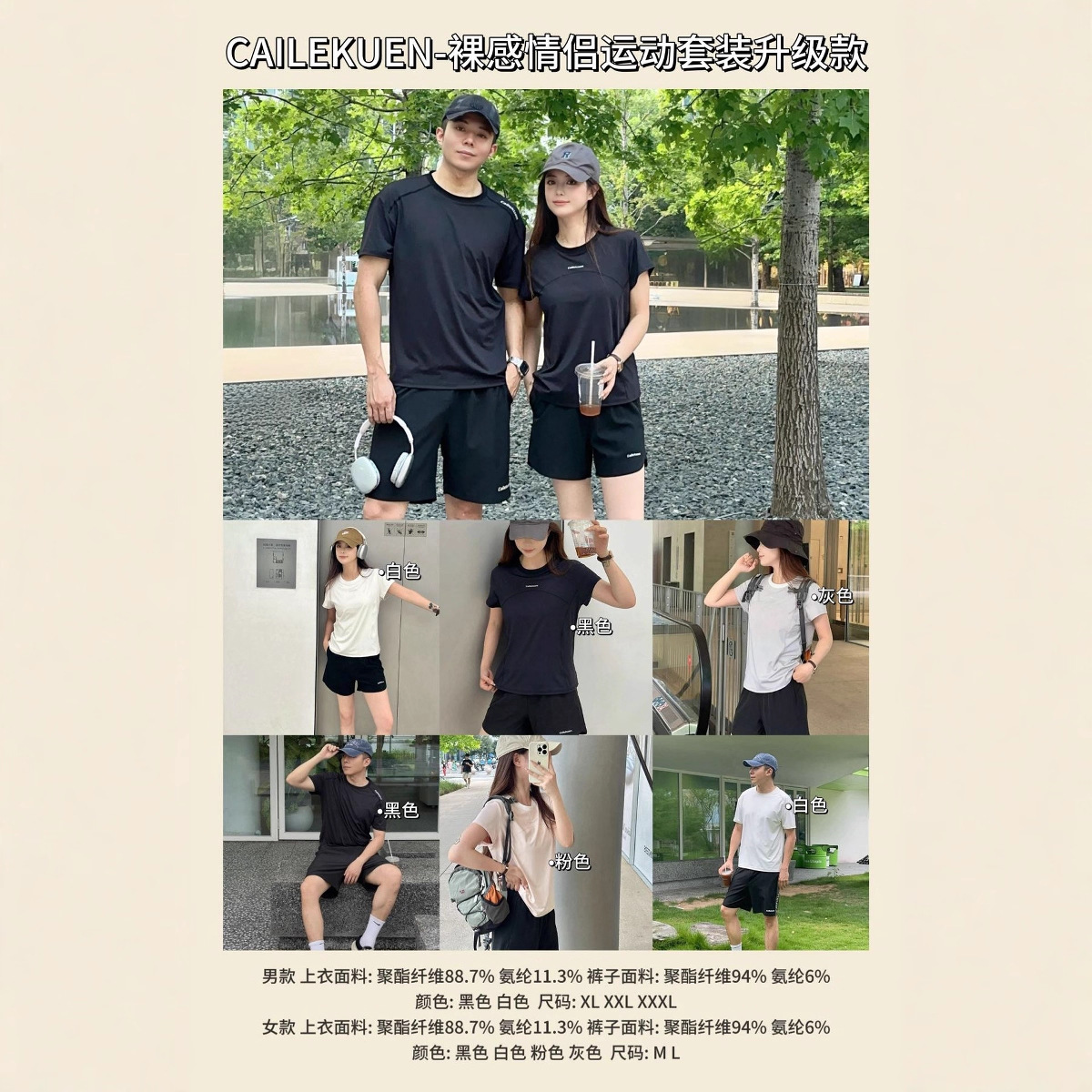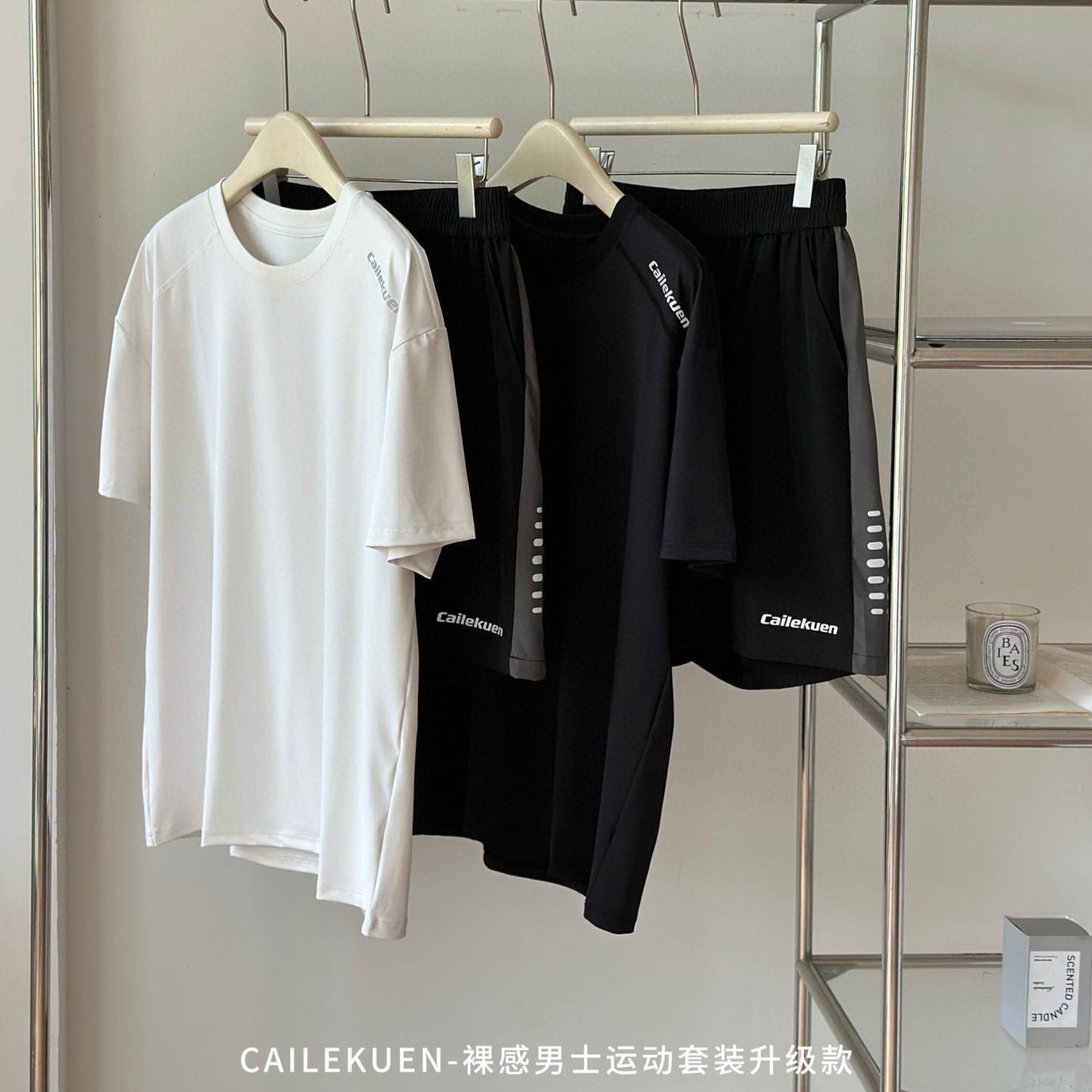 CAILEKUEN裸感男士运动套装升级款跑步休闲宽松短袖短裤两件套薄1
