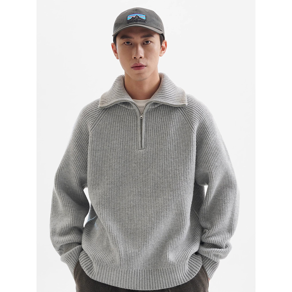 Sweater Setengah Ritsleting Retro Gaya Korea Atasan Rajutan Pasangan Model Baru Musim Gugur dan Musim Dingin Atasan Gaya Jepang Dalaman Kerah Terbalik