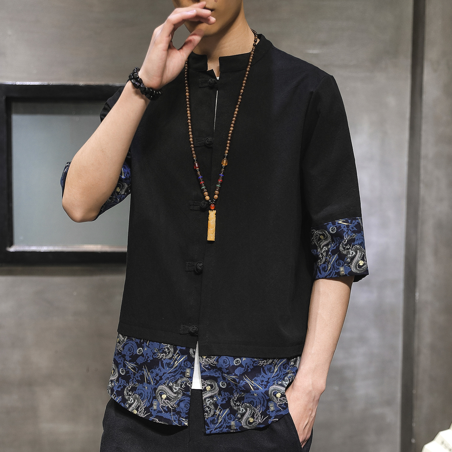 Kemeja lengan pendek katun dan linen pria, gaya cina baru musim panas kerah berdiri warna cocok kemeja lengan setengah pakaian pria 2024