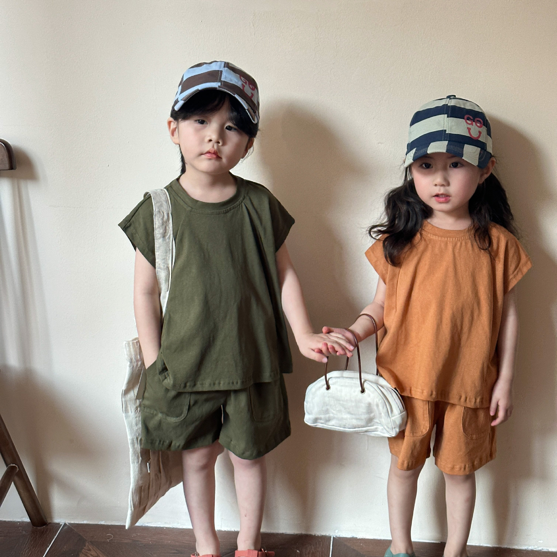Setelan olahraga musim panas anak-anak laki-laki pakaian longgar katun bayi 2024 baru perempuan rompi kasual pakaian musim panas