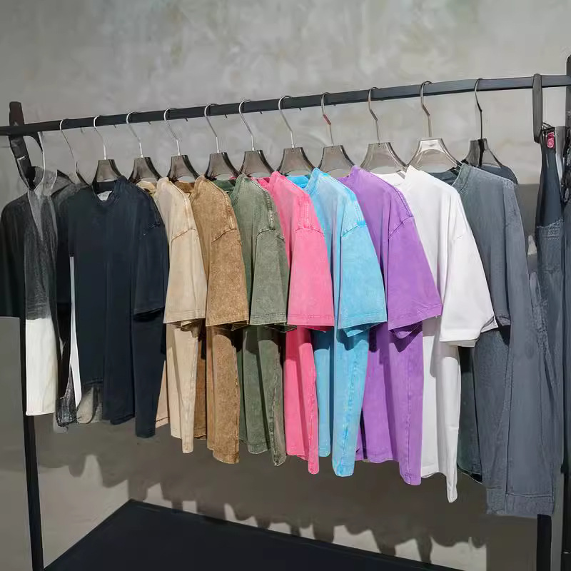 Jalan tinggi Eropa dan Amerika ins gaya yang sama musim semi dan musim panas dicuci tertekan kerja berat kerajinan batik T-shirt retro longgar lengan pendek