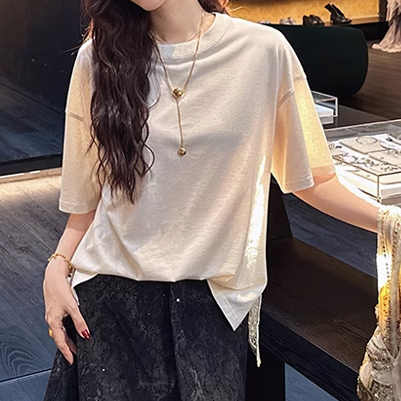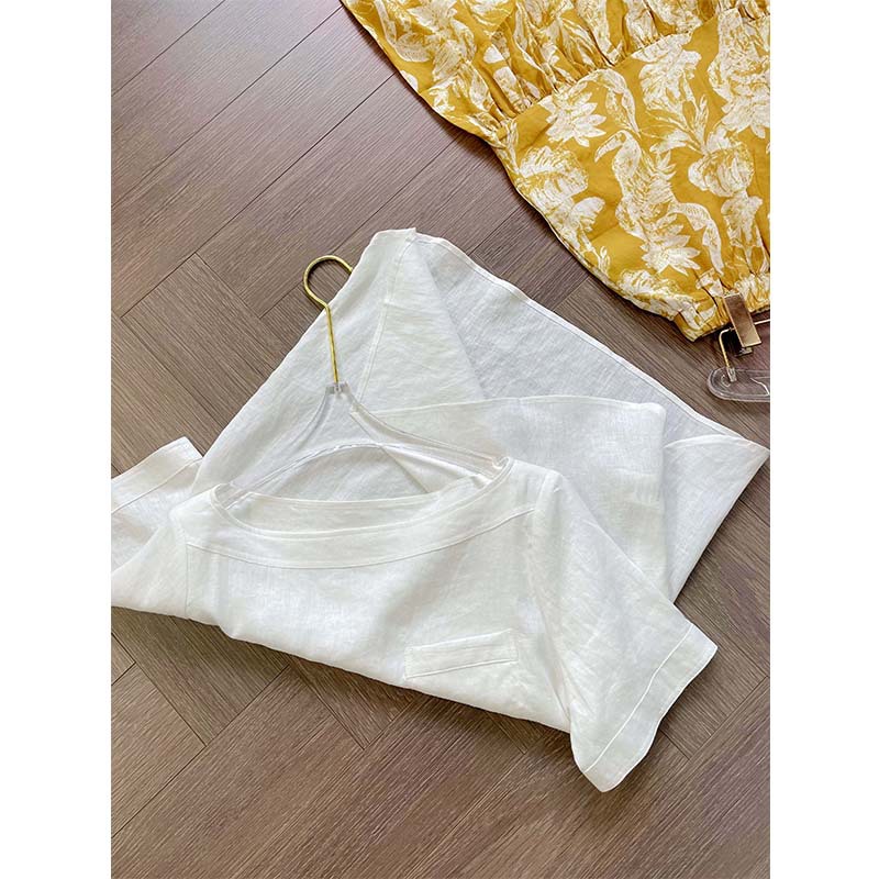 [Hefengli] Tisi benang katun linen bordir T2025 model baru musim semi model kerah bulat netral