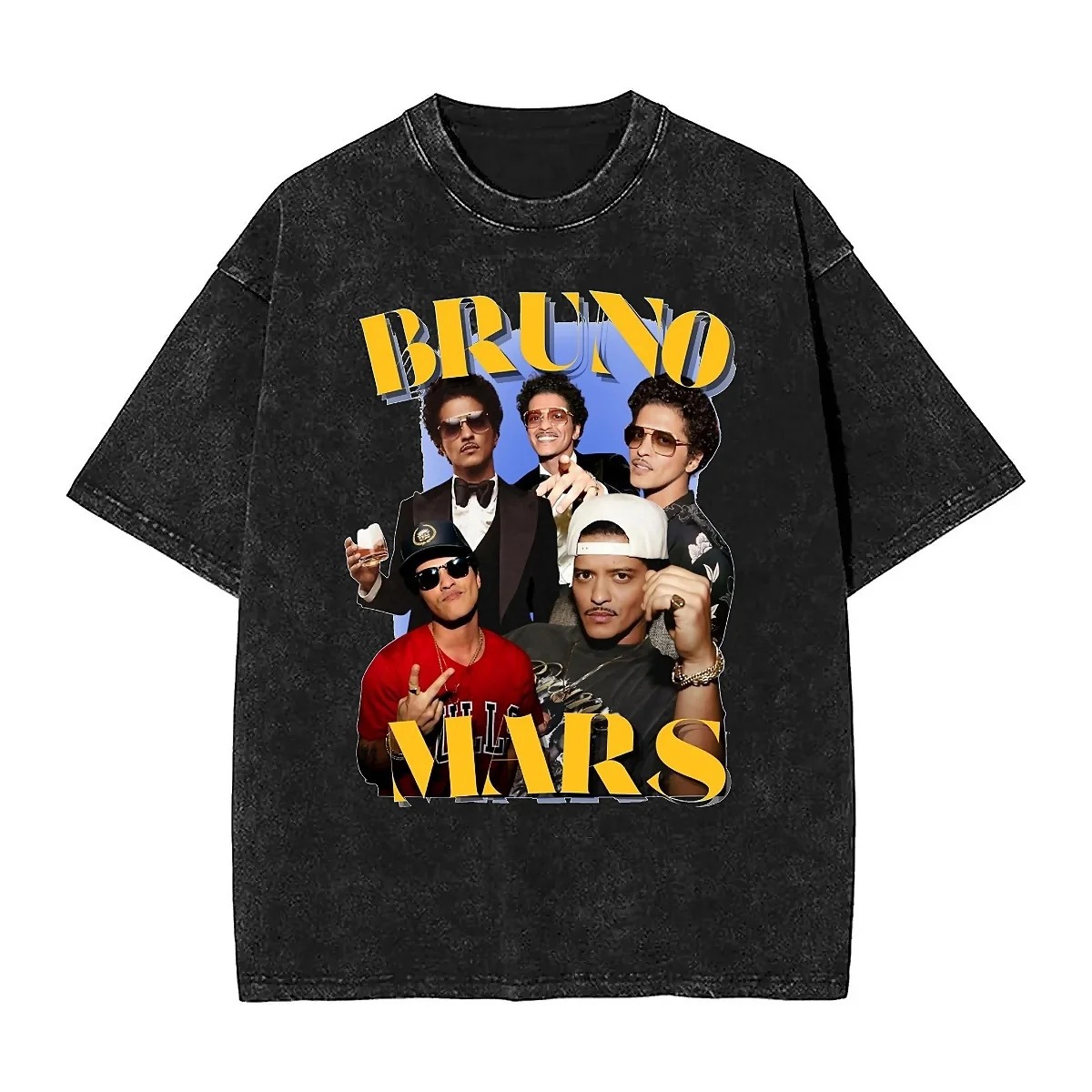 2025 Perdagangan Luar Negeri Baru Bruno Pop Musisi Dicuci Kaos Retro Universal Pria Wanita Mars Ameri