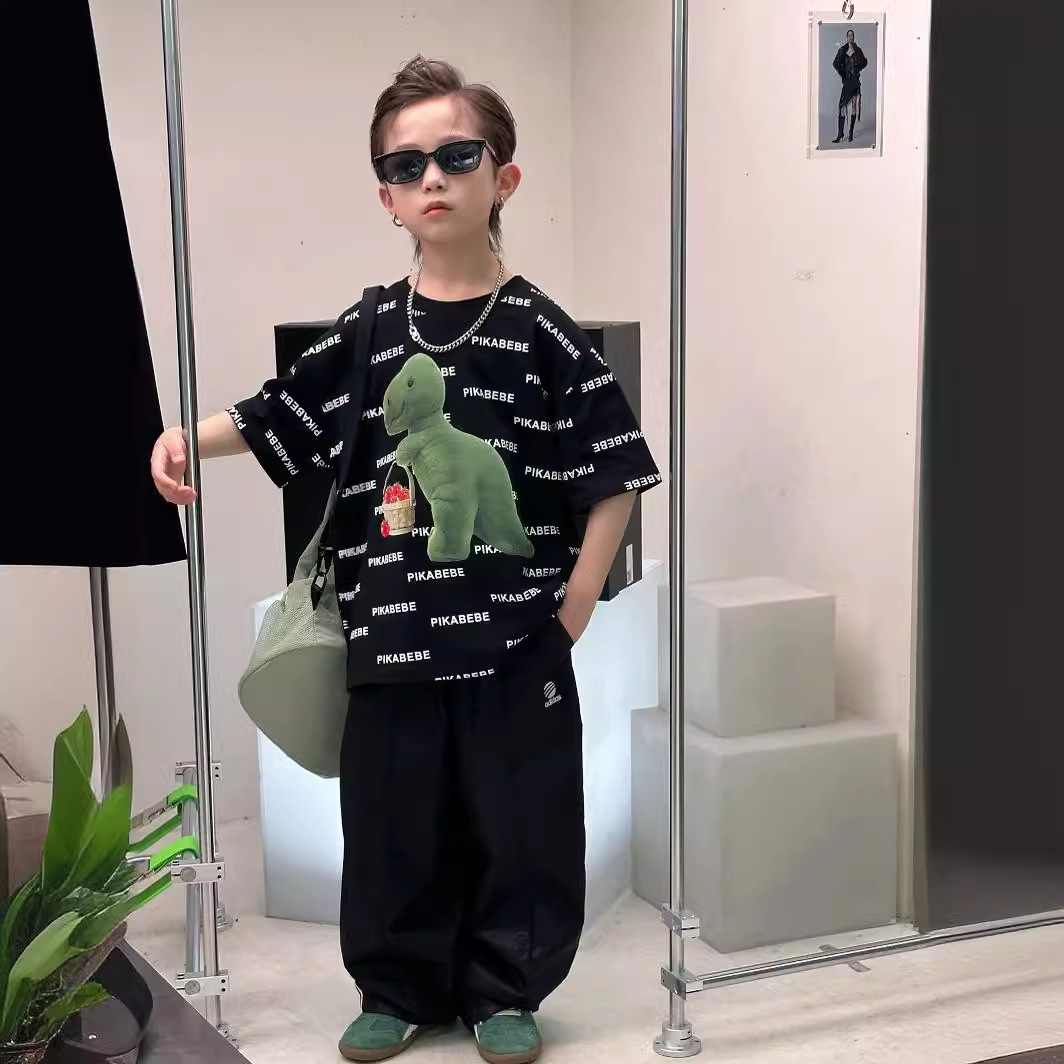 [Penawaran Khusus Tersedia] Pakaian Anak Laki-laki Inggris Kasual Kasual Pribadi Lengan T Longgar Anak-anak Trendi Gaya Korea Musim Panas 2025 untuk Anak Besar