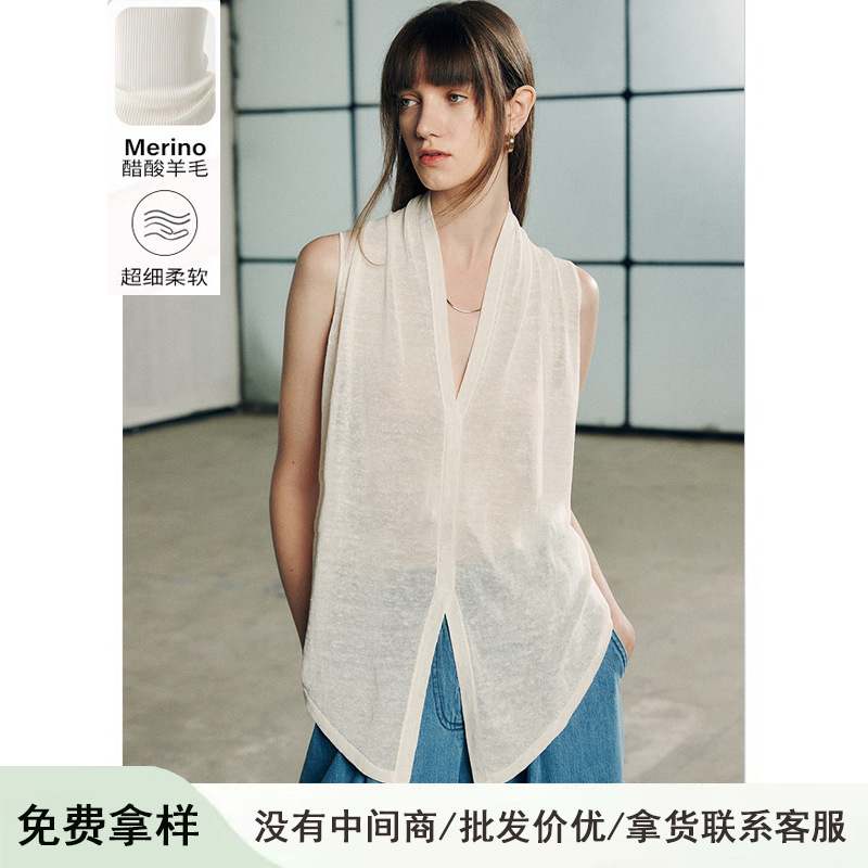 Rompi Rajut Kerah V Wol Asam Asetat Model Luar Baju Atasan Tanpa Lengan Tipis Baju Rajut Bahu Lipat