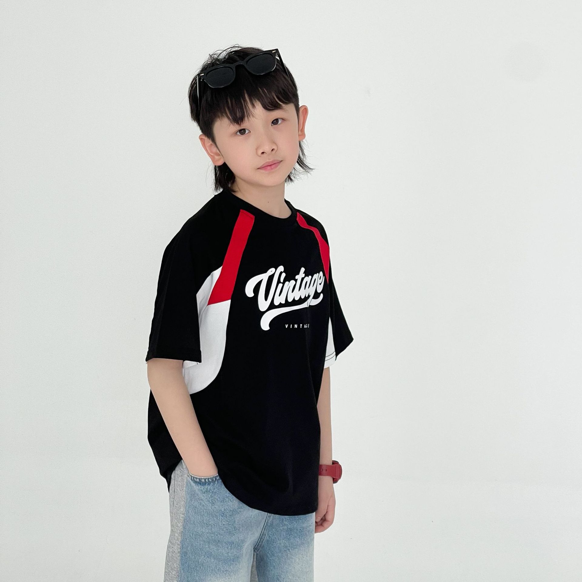 Pakaian Anak-anak Lengan Pendek Lengan Pendek Lengan Pendek Gaya Amerika Longgar Lengan Pendek Kombinasi Warna Anak Laki-laki Model Baru Musim Semi dan Musim Panas 2025
