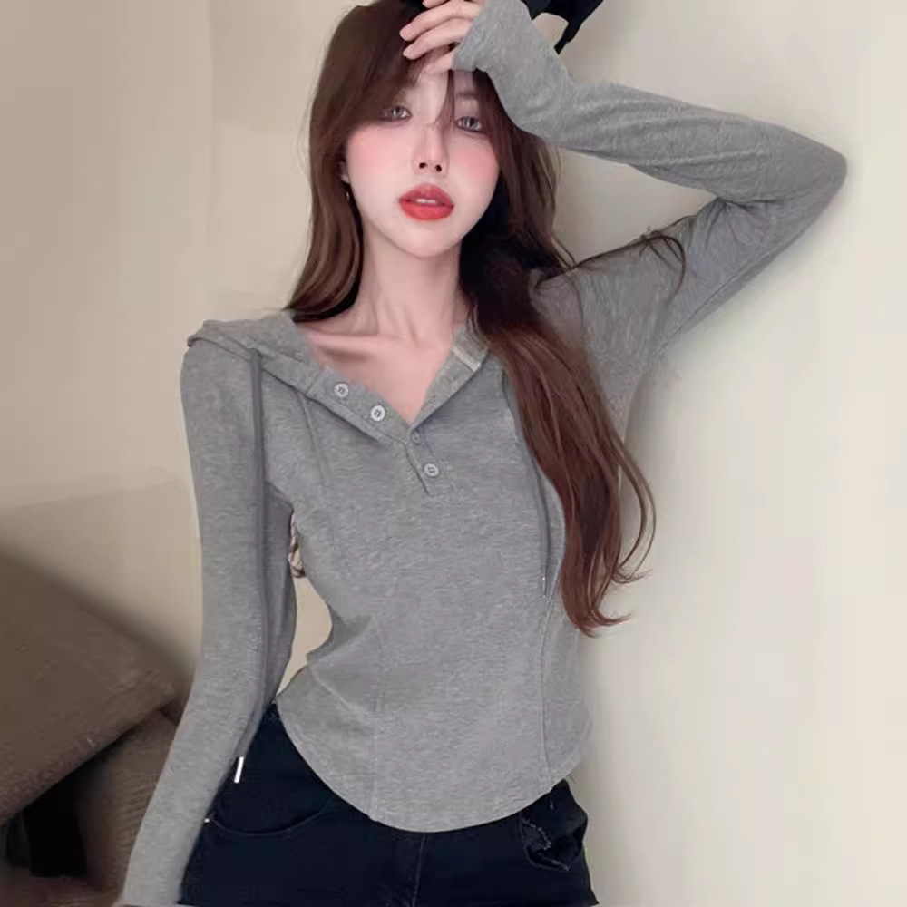 Kemeja Dalaman ramping ukuran plus 2023 T-shirt keinginan murni wanita pakaian dalam musim gugur atasan cantik rasa desain bertudung