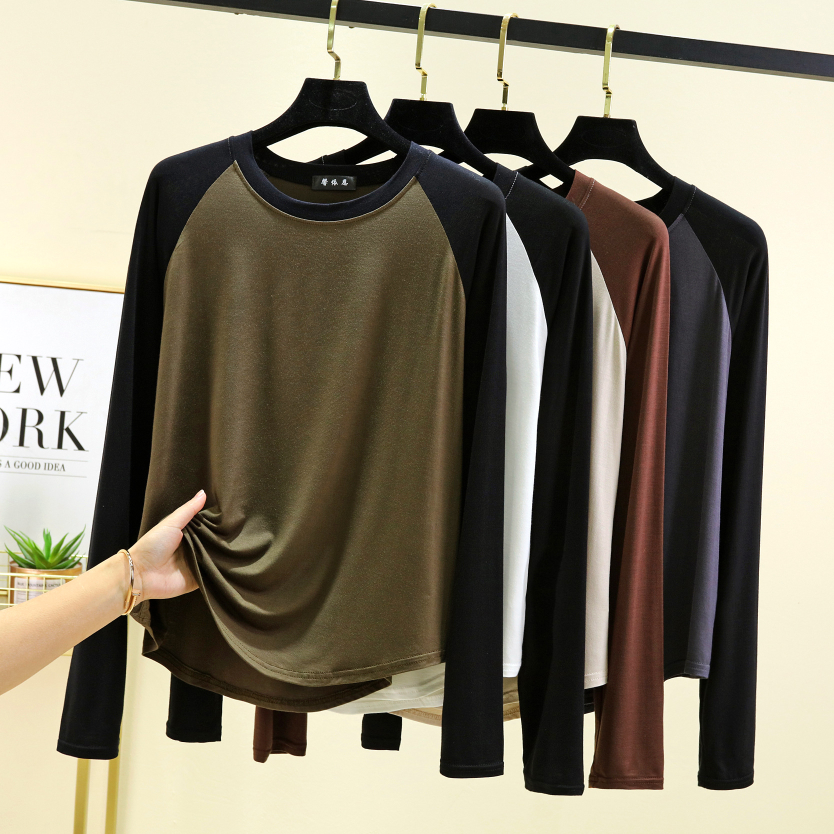 Kaus wanita lengan panjang, kaus modal musim semi dan musim panas 2021 slim fit Semua cocok leher bulat kemeja bottoming tipis ukuran besar