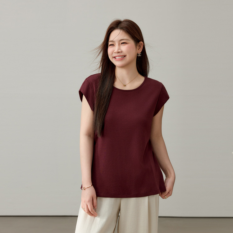 Kaus Ukuran Besar Lengan 3/4 Katun Murni Musim Panas 2025 Kaus Dalaman Longgar Lengan Pendek Wanita Atasan Terlihat Kurus Warna Polos Dalaman