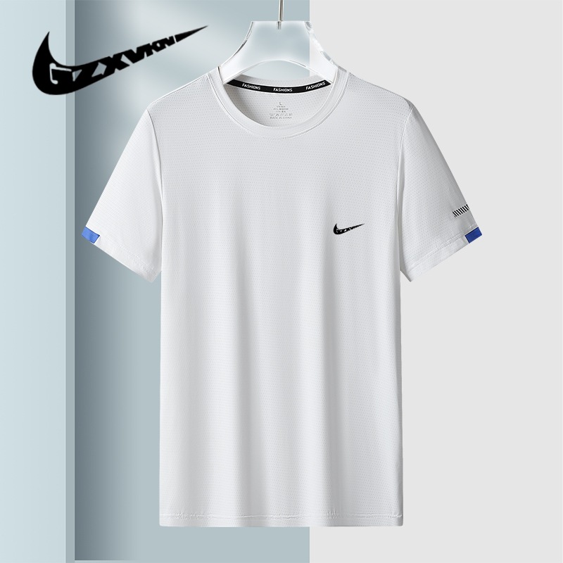 Kaus lengan pendek longgar pria, T-shirt olahraga sutra es baru Musim Panas 2024, ukuran besar cepat kering kasual olahraga