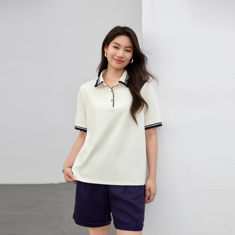 [T-Shirt Kerah Sambungan Mudah Dipadu Padan Mengurangi Usia Katun Murni Nyaman] Pakaian Wanita Ukuran Besar Berlemak MM2025 Musim Panas Model Baru