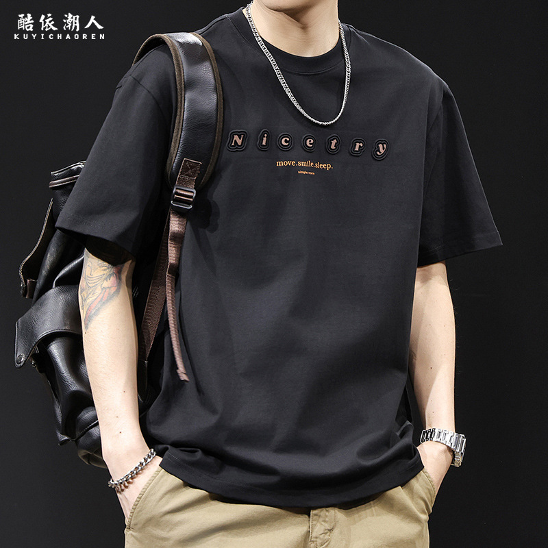 T-Shirt Lengan Pendek Merek Trendi Atasan Lengan Setengah Mudah Dipadu Padan Instagram Kasual Longgar Tampan Model Baru Musim Panas 2024 Pria