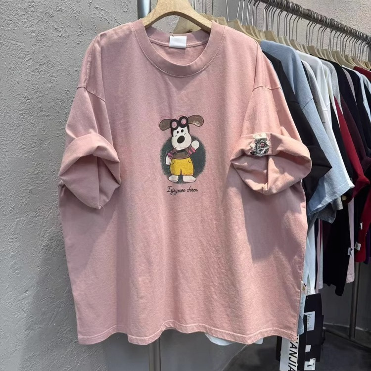 Kaus Ukuran Besar Longgar Bergaris Versi Korea Model Laris Asia Tenggara 2025 Kaus Lengan Panjang Gaya BF Gadis Gadis Tampan dan Aneh