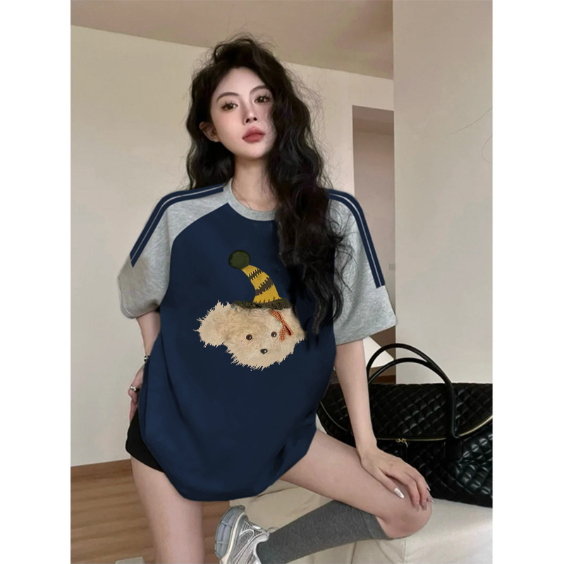 Kaus wanita ukuran besar, Kaus wanita lengan pendek, kaus longgar sederhana, kaus motif baru, satu potong pengiriman 8024