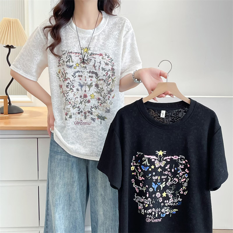 Kaus Renda Jacquard Model Baru Musim Panas 2025 Pakaian Wanita Lengan Pendek Ukuran Besar T-shirt Modis Bersablon Gadis Gemuk Atasan Niche 673
