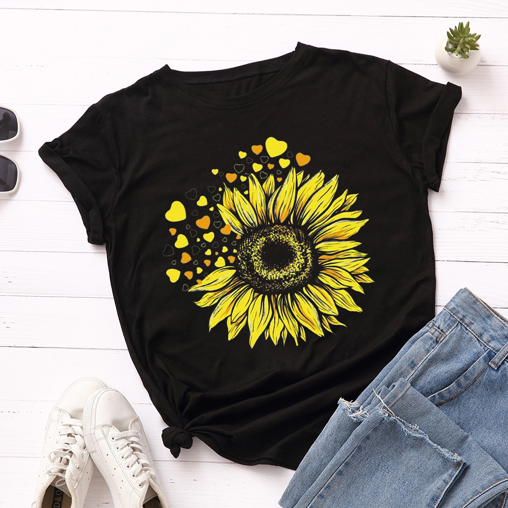 Kaus lengan pendek untuk wanita, eaby Amazon perdagangan luar negeri lintas batas Eropa dan Amerika, Kaus katun leher bulat longgar, kaus lengan pendek untuk wanita