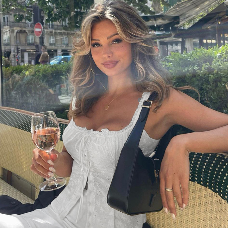 Kaus kerah persegi untuk wanita, pakaian wanita musim panas gaya Eropa dan Amerika, atasan renda, tali serut pelangsing ramping untuk wanita 2024