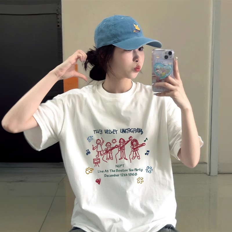 T-Shirt Lengan Pendek Warna Putih Musim Panas Wanita Musim Panas Ukuran Besar Terlihat Langsing Longgar Model Baru T-shirt Lengan Setengah Panjang Atasan Instagram
