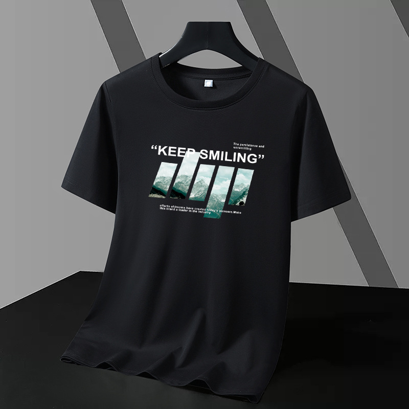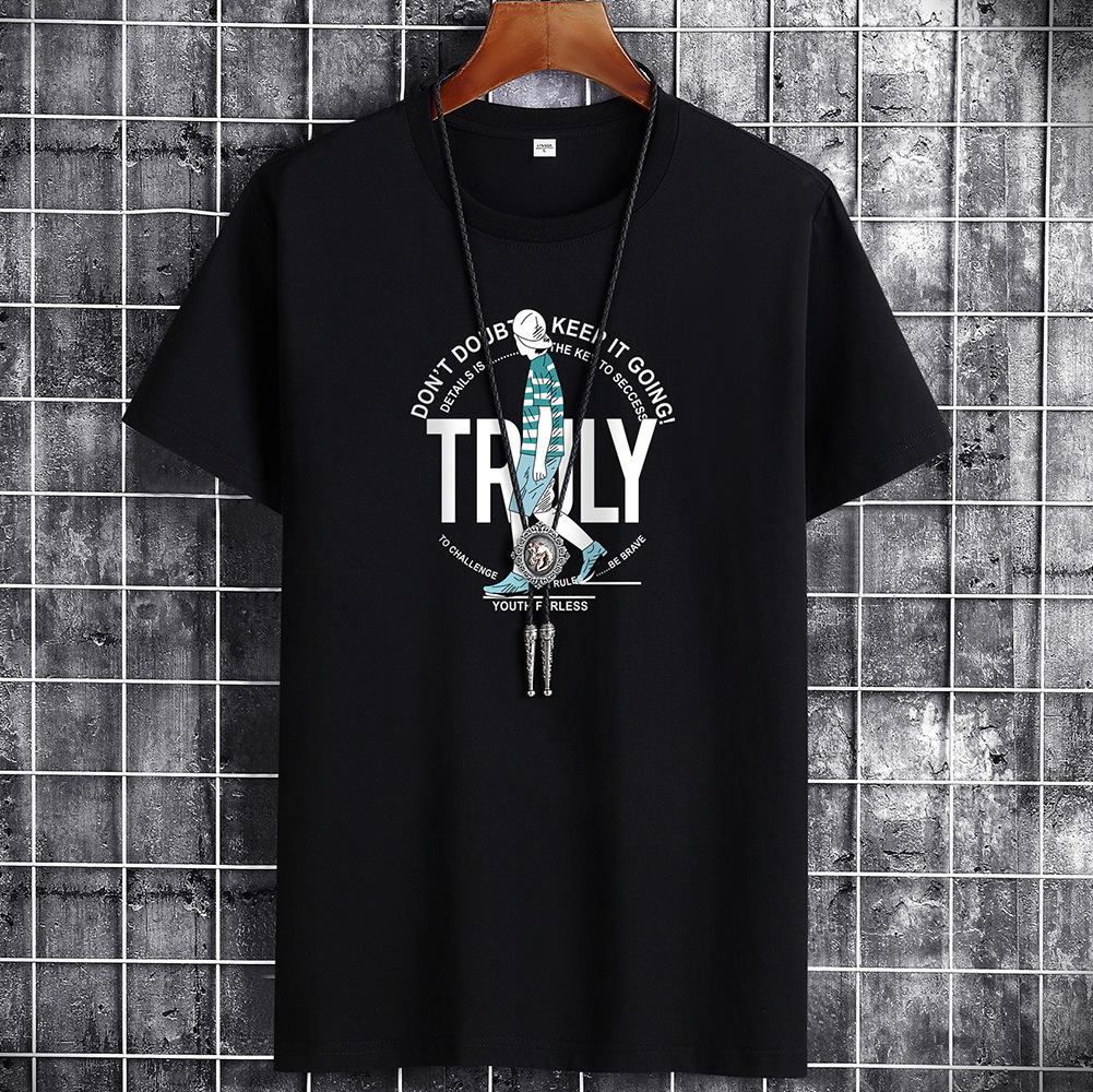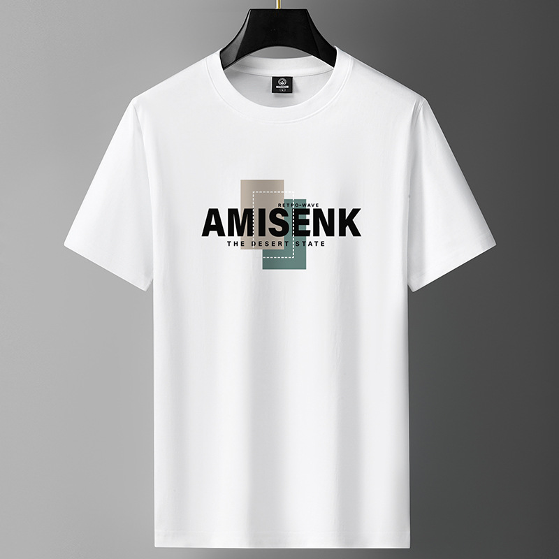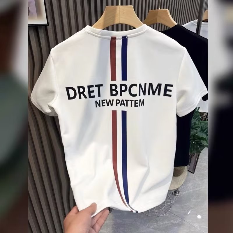 Kaus katun lengan pendek pria, kaos sutra es trendi musim panas mahasiswa setengah lengan ukuran plus bottoming shirt