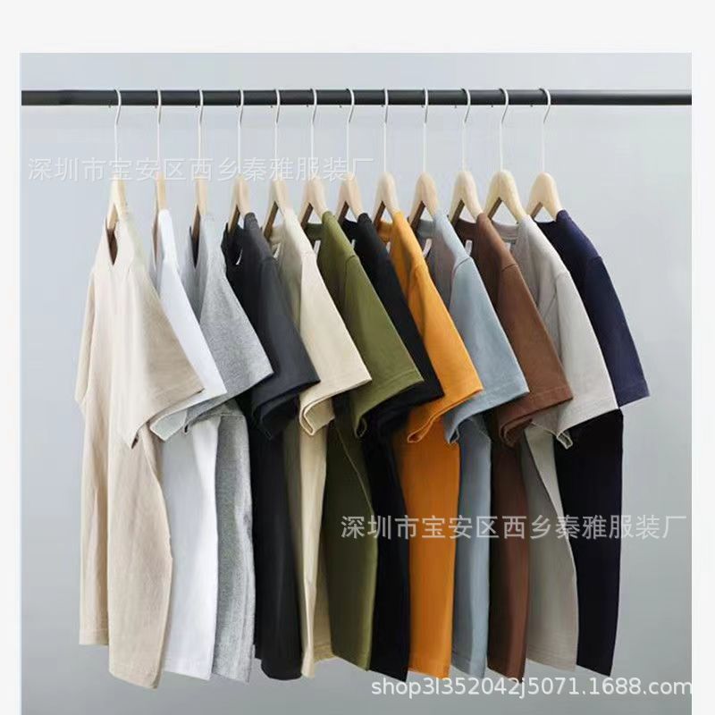 重磅100%棉落肩短袖t恤男女款圆领宽松纯白色落肩打底衫2024