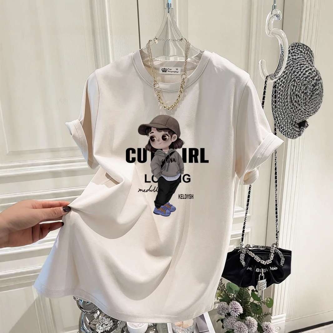 欧货大版宽松t恤女短袖纯棉2025夏季新款韩版可爱女孩中长款上衣