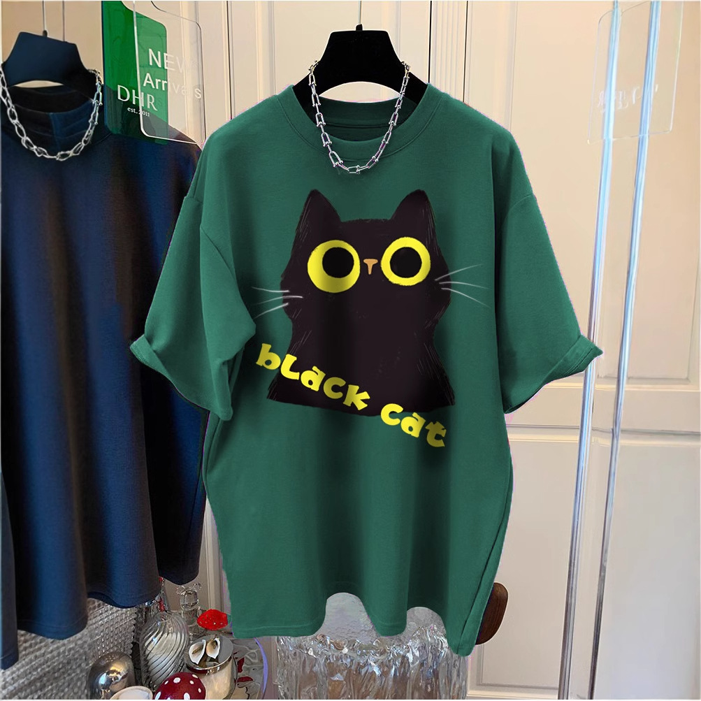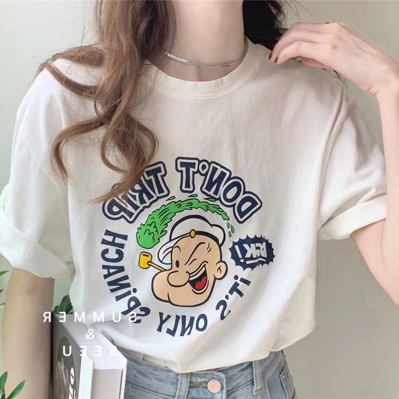 Kaus kartun lengan pendek wanita, pakaian luar musim panas 2022 gaya Korea besar longgar semua-cocok untuk semua