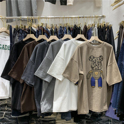 夏季潮牌男式短袖T恤衫重磅纯棉宽松半袖港风学生大码上衣打底衫