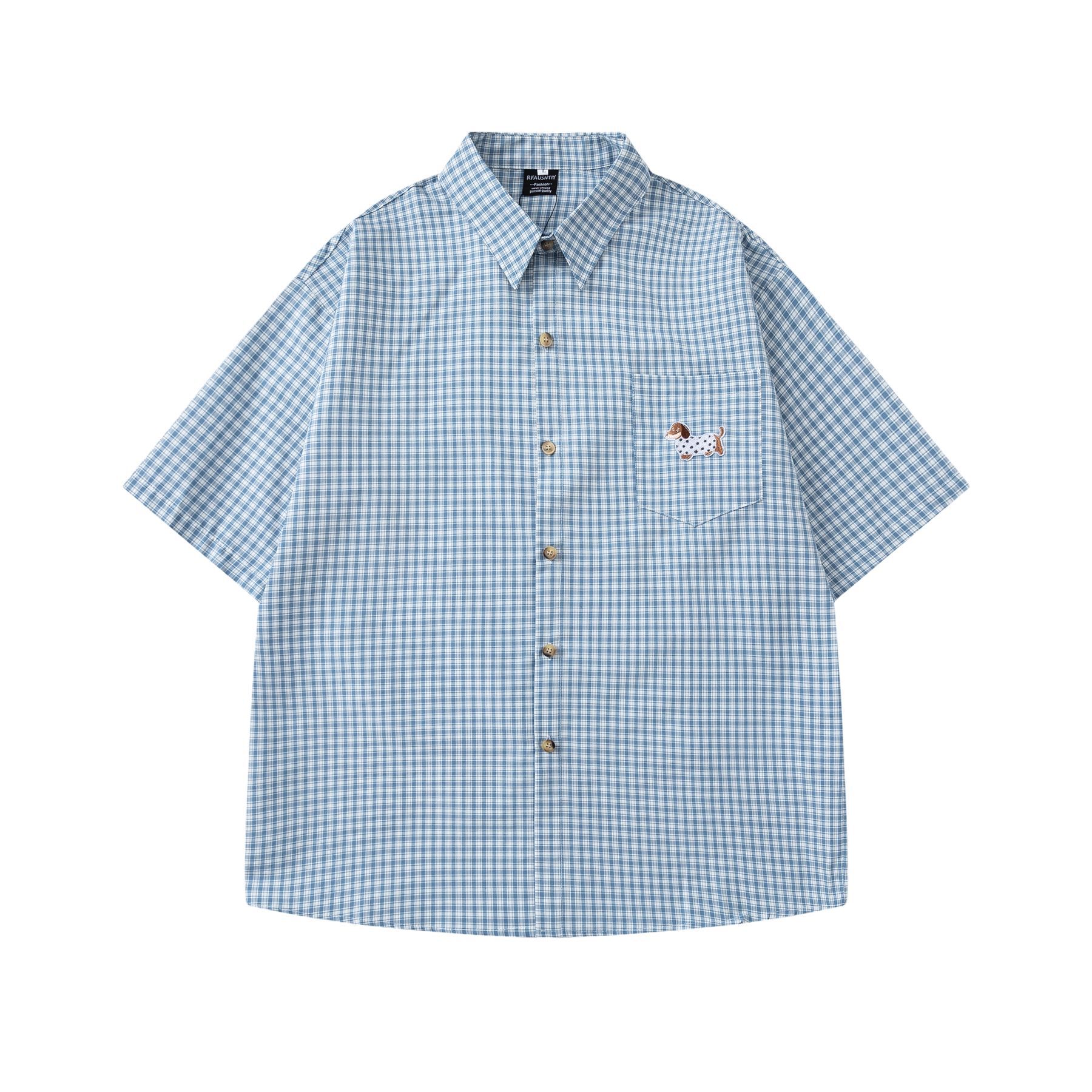 Kemeja Lengan Pendek Warna Kombinasi Bordir Anak Anjing Merek Trendi Gaya Jepang Kemeja Pria Pasangan Longgar Mudah Dipadu Padan Bf