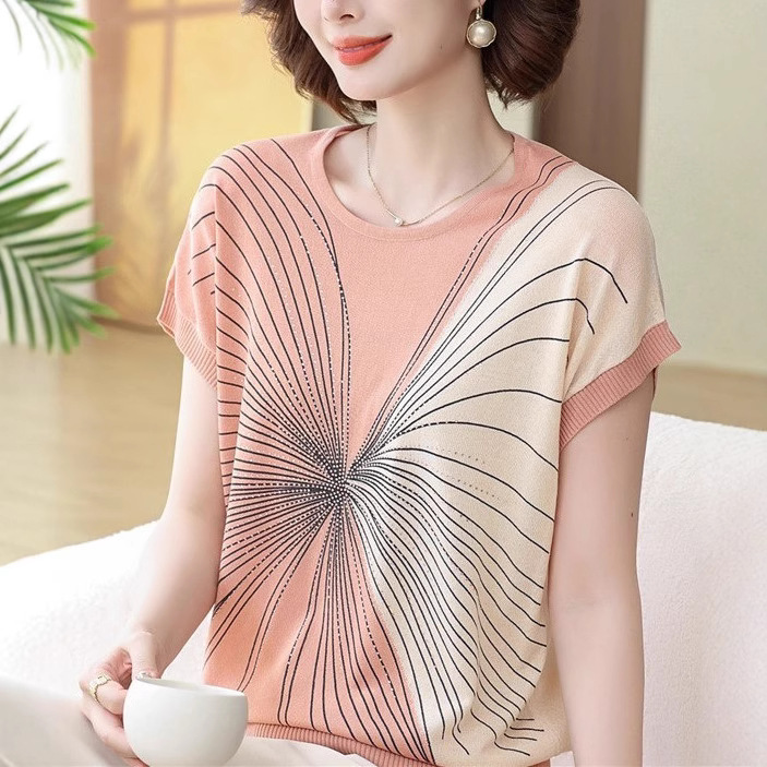 妈妈夏装短袖针织小衫洋气质中老年女夏季薄款上衣中年女宽松针织