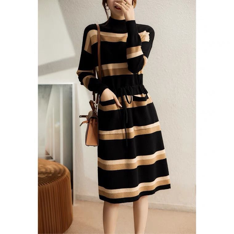 Sweater bergaris wanita, Atasan pakaian luar pullover longgar Dalaman Dalaman kemeja mode baru musim gugur dan musim dingin 2023