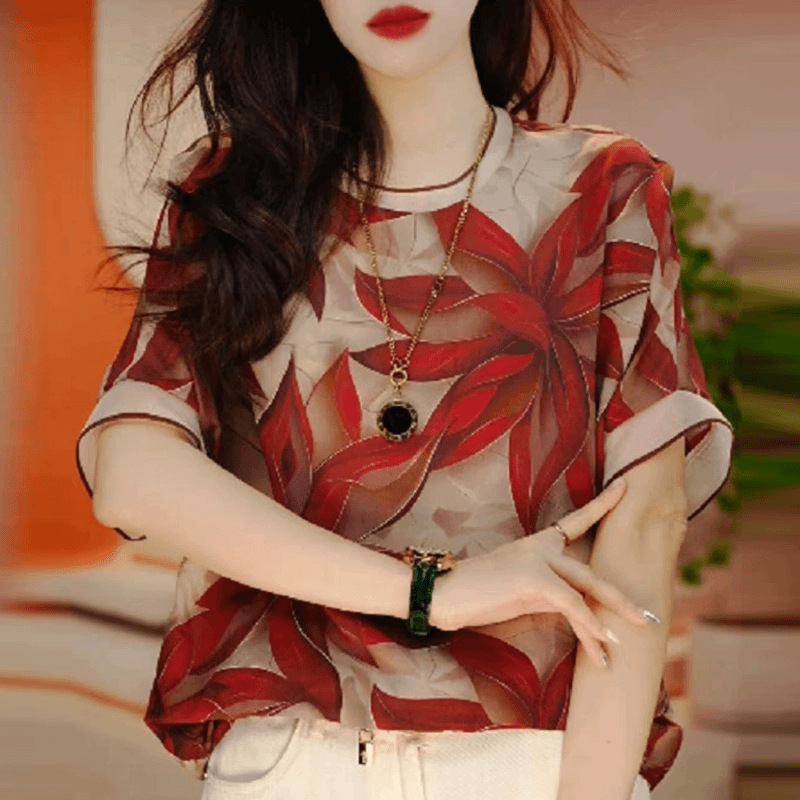 Kaus lengan pendek motif Perancis kelas atas untuk wanita musim panas baru desain niche kemeja kecil tipis longgar