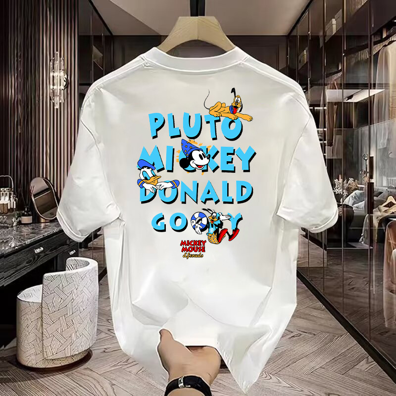 Kaus lengan pendek bercetak kartun Donal Bebek, kaus longgar leher bulat lengan pendek musim panas untuk pria dan wanita